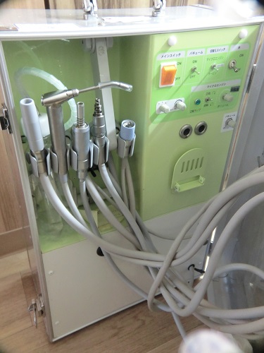 | ポータブル訪問機器 虫歯治療、歯周治療、予防管理処置を行う事が可能となります。 |