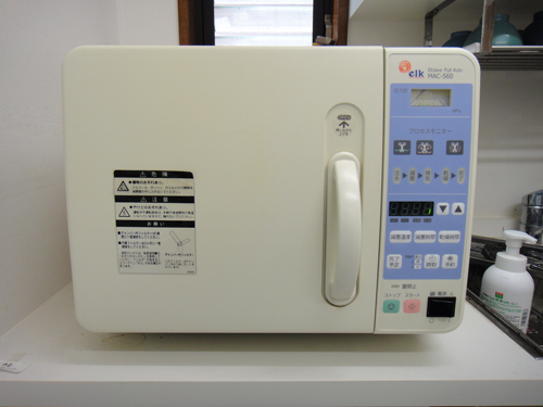 オートクレーブ 全ての細菌、ウイルスを死滅させます。完全滅菌しておりますので安心して治療受けていただけます。 |