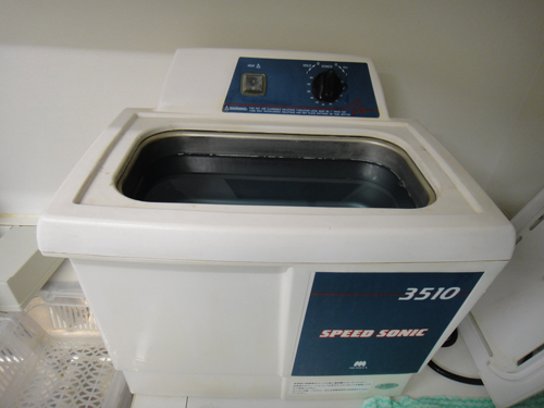 超音波洗浄器 使用した器具は初めにこの装置で超音波振動を与え、手洗いでは難しい細かな汚れを取り除きその後、滅菌器にかけます。 |