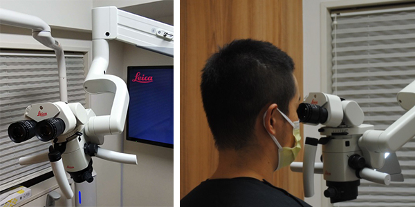 | マイクロスコープ(歯科用顕微鏡) 裸眼や拡大鏡では見えない治療を可能にしたり、診断や治療が難しい症例に関しても裸眼の20倍の大きさで見る事が可能になります。 |