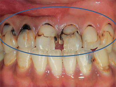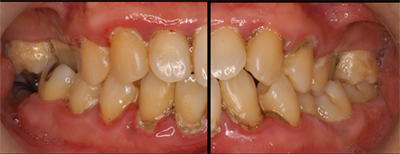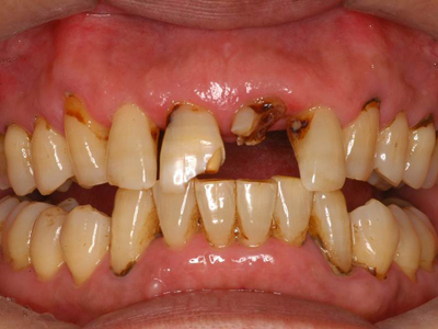 虫歯により歯が崩壊したケースも歯肉の状態と共に改善致します。
